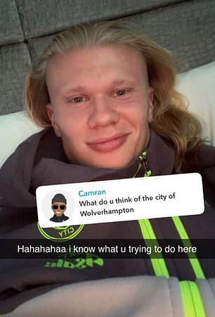 赛前,哈兰德在他的社媒账号上分享了一张自拍照,并标记了“狼队主场”的位置。