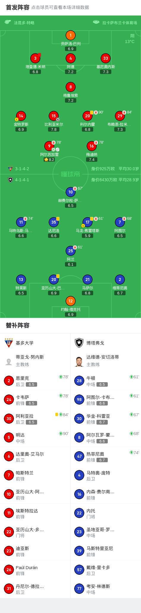 南美解放者杯1/8决赛次回合,基多大学对阵博塔弗戈的比赛在双方的激烈角逐中展开。比赛中,基多大学球员阿尔苏加雷先是送出一次精妙助攻,帮助队友比利亚米尔打破场上僵局。随后,阿尔苏加雷主罚点球命中,进一步扩大了领先优势。比赛尾声阶段,基多大学球员理查德-米纳因犯规被裁判出示红牌,但球队依然将2-0的比分保持到终场。凭借此役的胜利,基多大学以两回合总比分2-1淘汰对手,成功晋级下一轮。